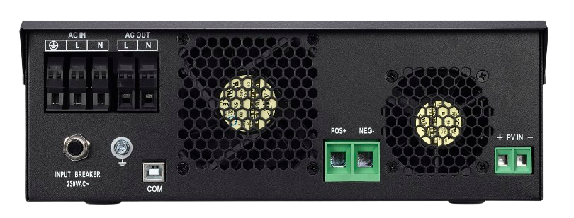 - Inteligentný LCD displej - Multifunkčný LCD displej na monitorovanie v reálnom čase a jednoduchú konfiguráciu prevádzkových režimov vrátane vstupného/výstupného napätia, stavu batérie a parametrov nabíjania.