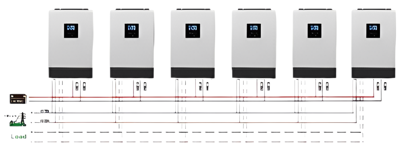 V jednofázovej konfigurácii môžu byť paralelne zapojené až štyri meniče. Táto konfigurácia zvyšuje celkový výstupný výkon, takže je ideálnym riešením, keď je potrebný vyšší výkon na podporu viacerých zariadení. Je to ideálna možnosť pre používateľov, ktorí potrebujú škálovateľný systém, ktorý môže rásť s ich rastúcimi energetickými požiadavkami.